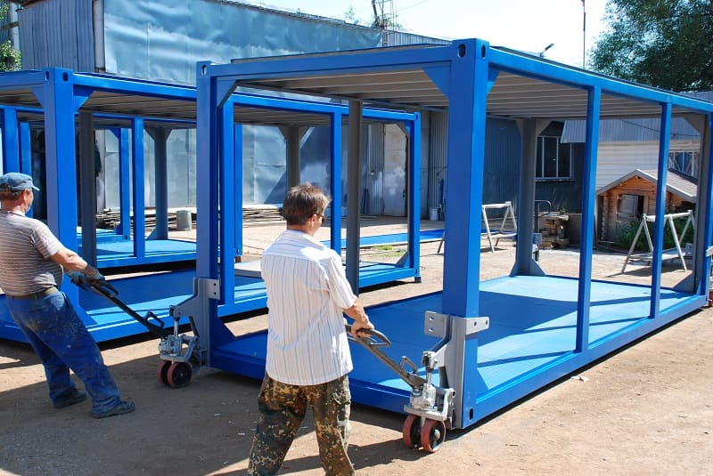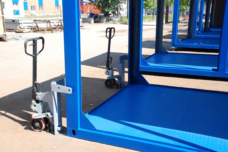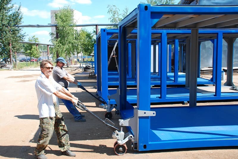 Особенности: в дополнение к комплекту каркасов нами была выполнена разработка и изготовление уникальных грузовых тележек для перемещения контейнеров и грузов контейнерного типа.